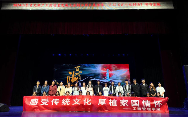 工商管理学院组织学生干部赴李沧大剧院观看原创大型吕剧《百川东到海》。该剧是一部反映青岛城市抗日历史和青岛劳工历史的戏曲作品,以20世纪30年代青岛人民抗击日寇为背景,通过男主人公的思想变化,表现了“天下兴亡,匹夫有责”的爱国情怀和百川最终归海的主题。观看结束后,同学们纷纷表示将铭记历史,吾辈当自强。