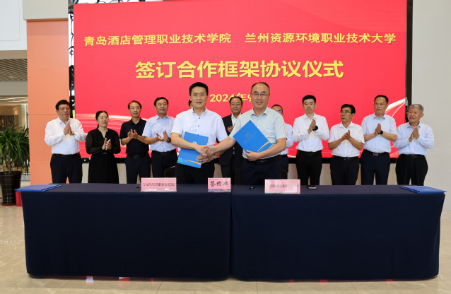 调研组一行考察了学校烹饪学院实训基地等教学实训场所,详细了解了学校实训基地建设与运行、师资队伍建设、产教融合、人才培养等方面的情况。参观结束后,姜玉鹏代表学校与兰州资源环境职业技术大学、甘肃交通职业技术学院、酒泉职业技术学院三所院校签订对口帮扶与合作框架协议。