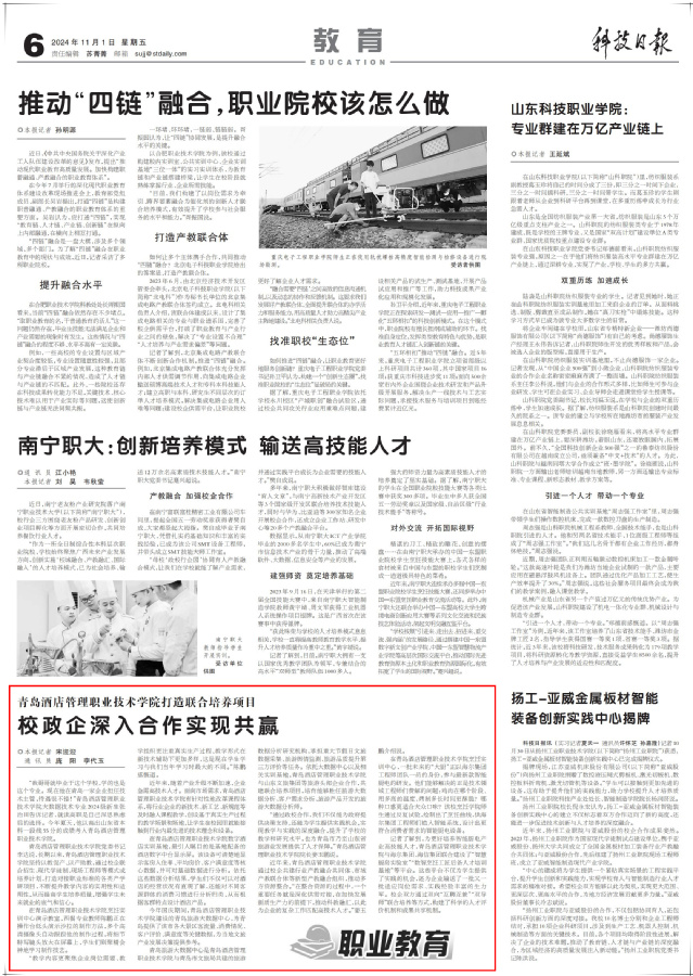 近年来,必赢线路检测3003no1通过校企共建行业产教融合共同体、市域产教联合体等新型产教融合组织,推动多方资源整合。“在整合资源的过程中,一个重要任务就是深化供需对接,在加快发展新质生产力的前提下,推动科教融汇,以此为企业的复杂工作匹配高技术人才。”姜玉鹏介绍说。