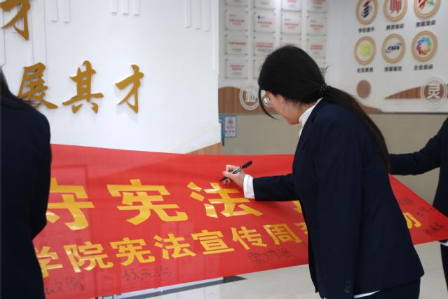 本网讯(宣传部)2024年12月4日是第十一个国家宪法日。为进一步普及宪法知识,弘扬宪法精神,学校各二级学院结合实际情况,纷纷开展形式多样的宪法宣传教育活动,提升师生尊崇宪法、学习宪法的意识,营造了全员学宪法、遵宪法、讲宪法的良好氛围。