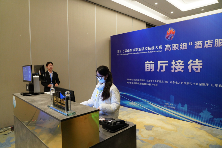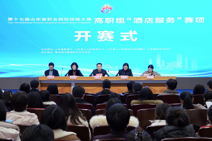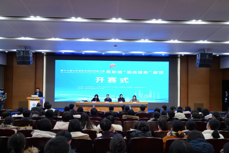 本网讯(酒店管理学院 王磊磊)12月17日下午,由山东省教育厅等四部门联合主办的第十七届山东省职业院校技能大赛高职组“酒店服务”赛项在学校开赛,学校副校长张宗国主持开赛式。