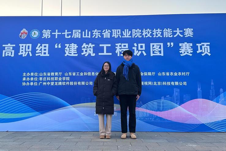 本网讯(酒店工程学院 姜雪晨)12月13日-15日,在第十七届山东省职业院校技能大赛高职组新设赛项“建筑工程识图”赛项中,必赢官网酒店工程学院赵婧、姜雪晨老师指导,工程造价专业孙硕、王家顺两名同学组成的参赛队伍荣获三等奖。