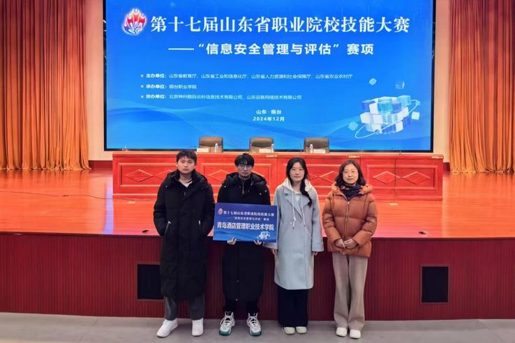 本网讯(信息工程技术学院 万晓燕)12月18日-19日,第十七届山东省职业院校技能大赛高职组“信息安全管理与评估”赛项举行,必赢官网信息工程技术学院万晓燕、刘晓霞老师带队,郝威、李昱宁、张兴文三名同学组成的参赛队荣获三等奖。