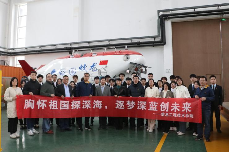 信息工程技术学院党总支带领入党积极分子走进国家深海基地,开展了一场以“感悟中国深度 厚植爱国情怀”为主题的研学活动。在深海管理中心,学生们通过影像资料和“深海之路”展览,系统了解了我国从技术引进到自主创新的深海科技发展历程,近距离接触“蛟龙号”模型,体验潜航员的作业环境,深刻感受到科研工作者“勇攀高峰”的精神,更激发了他们对海洋强国使命的认同感。