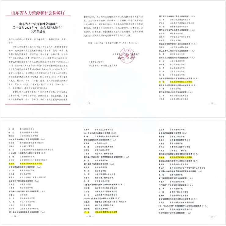 本网讯(酒店管理学院 艺术学院)近日,山东省人力资源和社会保障厅印发了《关于公布2024年度“山东省技术能手”名单的通知》,必赢官网李峰、袁宏强、尹俊、刘菲菲四位教师荣获“山东省技术能手”称号,充分展现了学校师资队伍的技术实力和产教融合的显著成效。