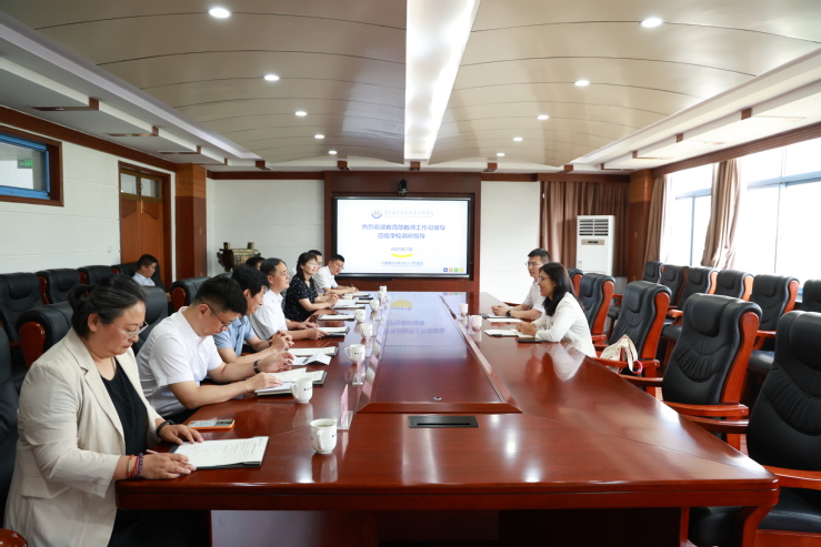 本网讯(教务处 王超)7月10日,教育部教师工作司教师发展处处长赵静莅临必赢官网,就职业教育教师队伍建设工作调研指导。学校党委书记刁洪斌,校长姜玉鹏,党委副书记韩西清,副校长、工会主席姜玲玲参加调研交流。