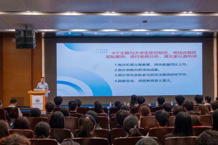 专家们围绕“崇尚科学 反对邪教”,警示邪教危害,倡导“不浏览、不赞同、不相信、不理睬、不接听”的“五不”抵制原则,引导学生增强防邪教辨识能力与树立正确三观;聚焦“非法集资防范”,结合虚假投资返利、高额回报承诺等真实案例,解析其特征及常见手段,普及金融法治知识,引导建立理性消费观念,守护个人财产;针对“电信(网络)诈骗预防”,梳理学生群体常见诈骗形式,传授识别技巧与防范方法,帮助建立系统认知以提升风险辨别及自我保护能力;立足“保密责任与国家安全”,结合国家保密形势及校园保密要求,强调学生需警惕并杜绝泄露敏感信息,主动学习保密法规,将保密意识融入日常。