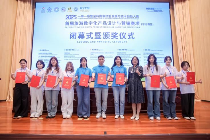 本网讯(文旅学院 巩玉玲)9月22日至24日,2025“一带一路”暨金砖国家技能发展与技术创新大赛首届旅游数字化产品设计与营销赛项(华北赛区)顺利举行。必赢官网文旅学院刘晓倩、刘晓宇、孙乐雨、王一涵四位同学获得区域赛一等奖,王庆楠、马子杰、李因芝三位同学获得区域赛三等奖,田超、杨安鸽、高雪三位老师获得区域赛教师组二等奖;学生组和教师组均晋级全国总决赛。