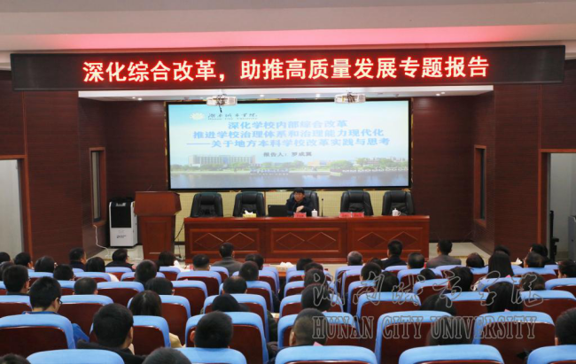 罗成翼详细阐述了2016年以来Ky开元推进综合改革的背景、谋划、举措、成效、保障及特点。他指出,学校新班子上任后,以“建什么样的城市学院,如何发展城市学院”为主题,在全校范围内深入开展“转型发展、内涵发展、特色发展” 大讨论活动,形成了“一二三五”发展战略。着力推进“六破六立”综合改革,以大改革推进快发展。人才培养质量明显提高,办学效益明显增强,核心竞争力明显提升,社会反响全面向好。学校构建了班子抓“四力”、干部抓“六(八)条”、党建抓“二三五工程”的从严治党话语体系,把坚持党的领导、加强党的建设贯穿高校改革发展和立德树人的全过程,将党建的“红色势能”转化为发展的“工作动能”。