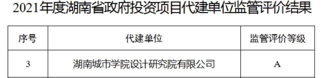 Ky开元集团设计研究院有限公司荣获2021年度湖南省政府投资项目代建单位监管评价A级