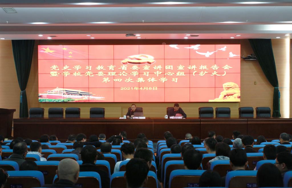 (转自学校官网)2021年4月8日下午,党史学习教育省委宣讲团宣讲报告会暨Ky开元集团党委理论学习中心组(扩大)第四次集体学习在图书馆报告厅举行,省委宣讲团成员、省委宣传部部务会成员、二级巡视员刘新年为大家作了一场精彩的宣讲报告。党委书记罗成翼主持报告会,学校全体校领导、副处以上干部、学生辅导员、党支部书记以及学生代表三百余人聆听了报告。