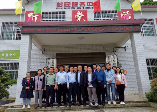 在苏溪村村民服务中心,产业联合党总支一行与村支“两委”、驻村工作队座谈。苏溪村支书邹文辉和乡村振兴驻村工作队队长孔军分别介绍了苏溪的基本情况以及推动乡村振兴、产业发展的初步设想。校办产业相关负责人就规划内容发表意见建议,双方就苏溪村的空间布局、产业发展等进行交流。