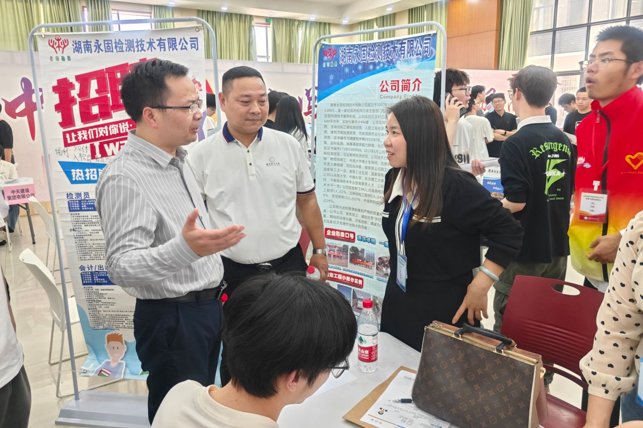 活动期间,校党委副书记袁志成、副校长孙倩以及土木工程学院领导老师亲临现场,与企业代表亲切交流,深入了解企业人才需求与行业发展趋势,就人才培养、实习就业、产学研合作等方面交换意见。同时,亲切询问学生求职情况,鼓励大家勇敢展现自我,把握就业机会。