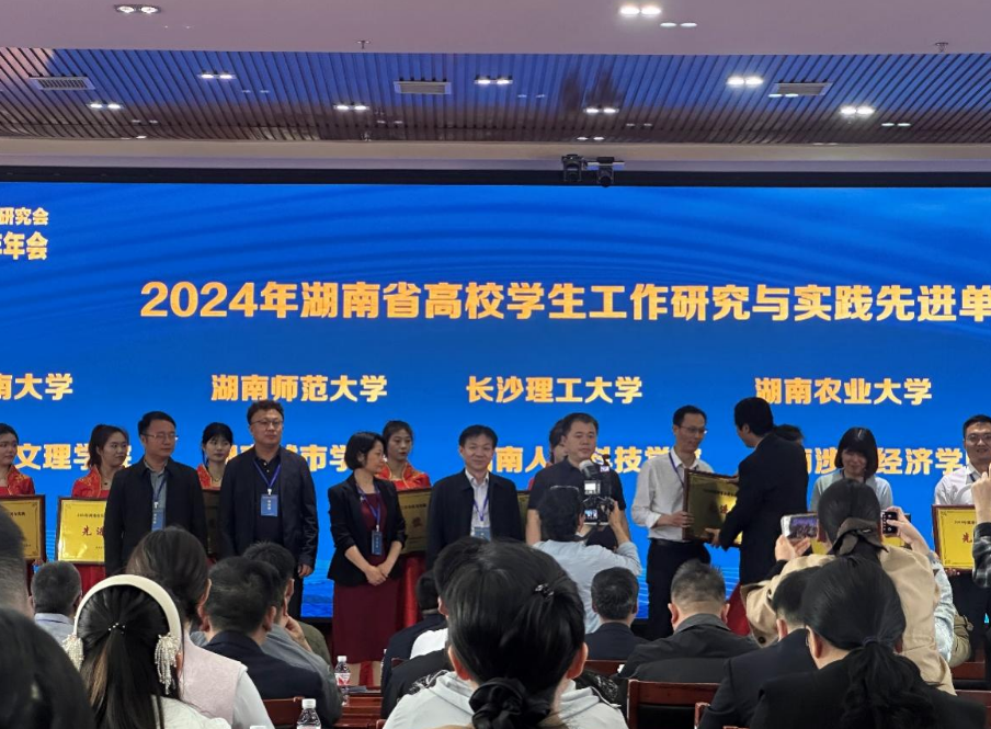 其中,学校获评“2024年湖南省高校学生工作研究与实践先进单位”,管理学院刘洁莹、人文学院范艳清获评“2024年湖南省高校辅导员工作研究与实践先进个人”,人文学院文玉婷、信息与电子工程学院万理获评“2024年湖南省高校学生思想政治教育研究与实践先进个人”,马克思主义学院冷红的论文《高校辅导员工作室有效管理对策研究》获评“2024年湖南省高校辅导员优秀论文”二等奖,信息与电子工程学院段欢、杜雪的育人案例《关注学生来时路,启智润心助成长——一例学生危机应对的成长辅导案例报告》获评“2024年湖南省高校学生工作优秀育人案例”二等奖。