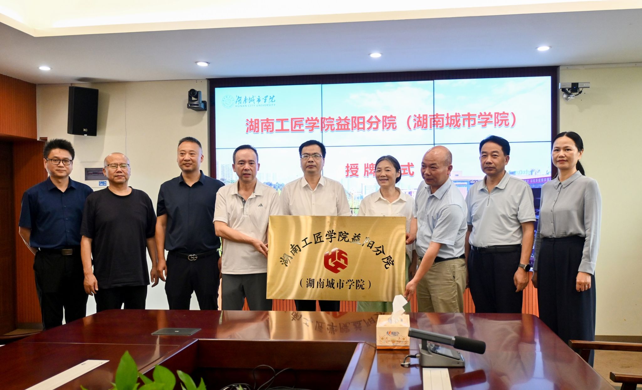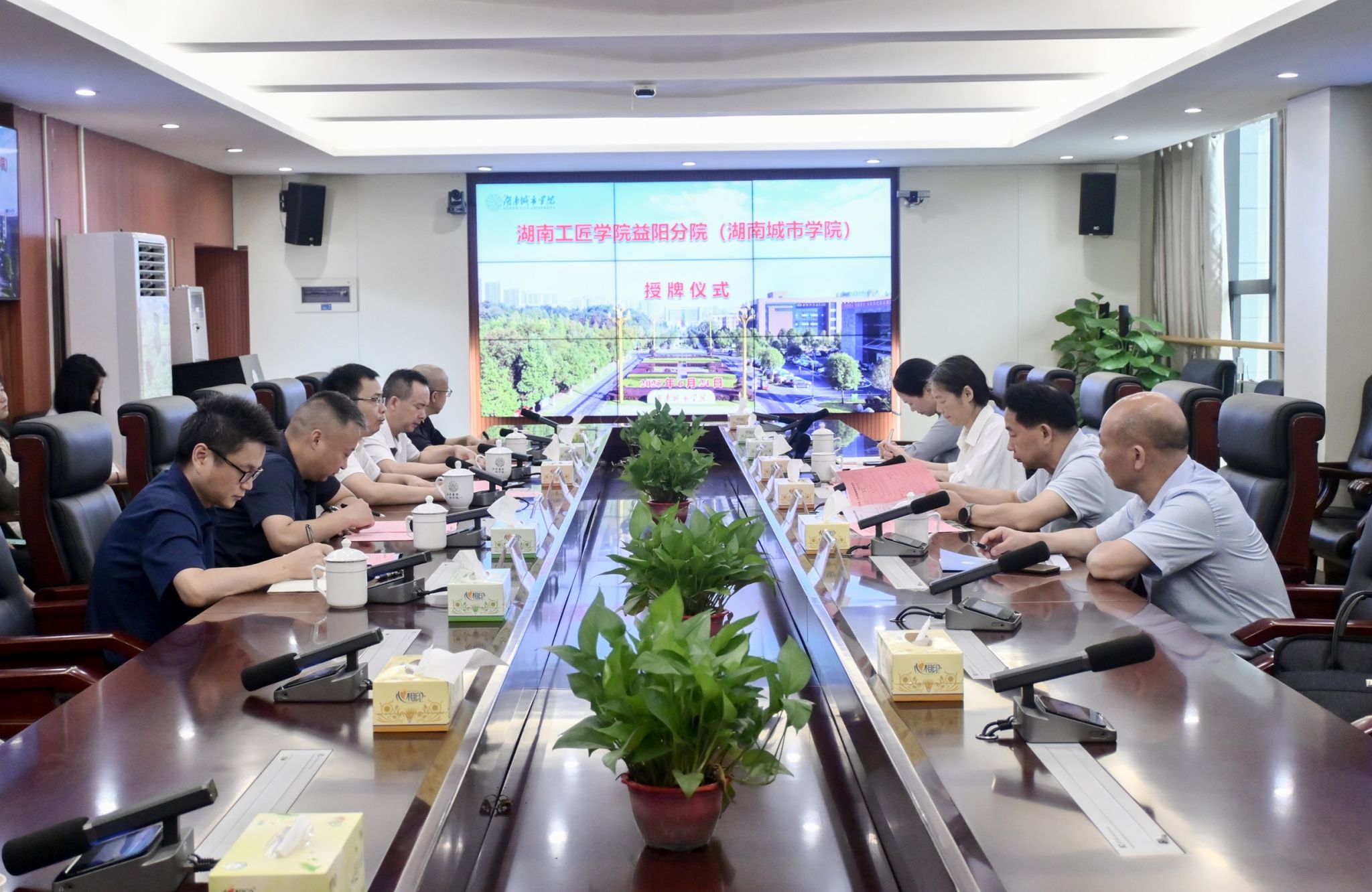本网讯(实习记者 李文雅 范语乔) 6月24日,湖南工匠学院益阳分院授牌仪式在办公楼一会议室举行。益阳市人大常委会副主任、市总工会主席杨丽萍,益阳市总工会党组书记、副主席徐志成,校党委副书记袁志成出席仪式。仪式由党委委员、组织部部长吕贤军主持。