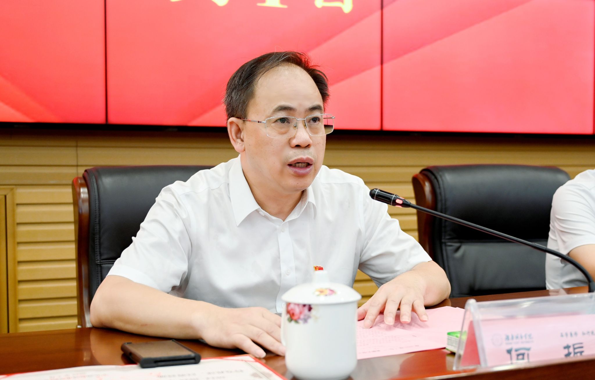 何振代表学校党委向奋斗在各条战线上的全体党员致以节日的问候和良好的祝愿,向受到表彰的优秀个人和先进基层党组织致以衷心的祝贺。他表示,全校各级党组织和广大党员干部应借此表彰大会之东风,将榜样力量转化为具体行动,坚守岗位,追求卓越,为学校的高质量发展及“升大申博”目标添砖加瓦。