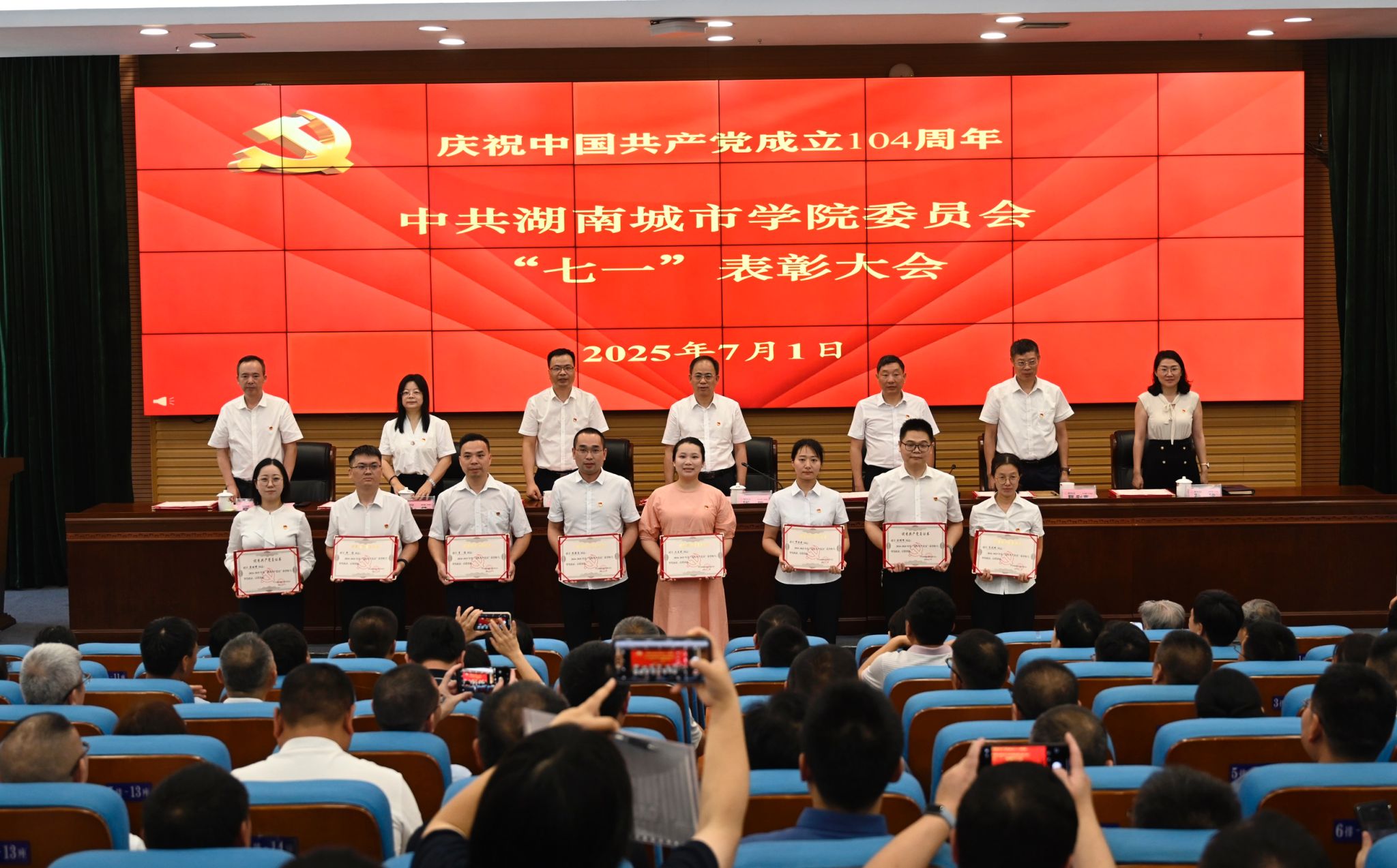 全体副处级以上领导干部,表彰对象,党支部书记代表,教师党员代表、学生党员代表,全体辅导员,“光荣在党50年”纪念章获得者代表参加仪式。