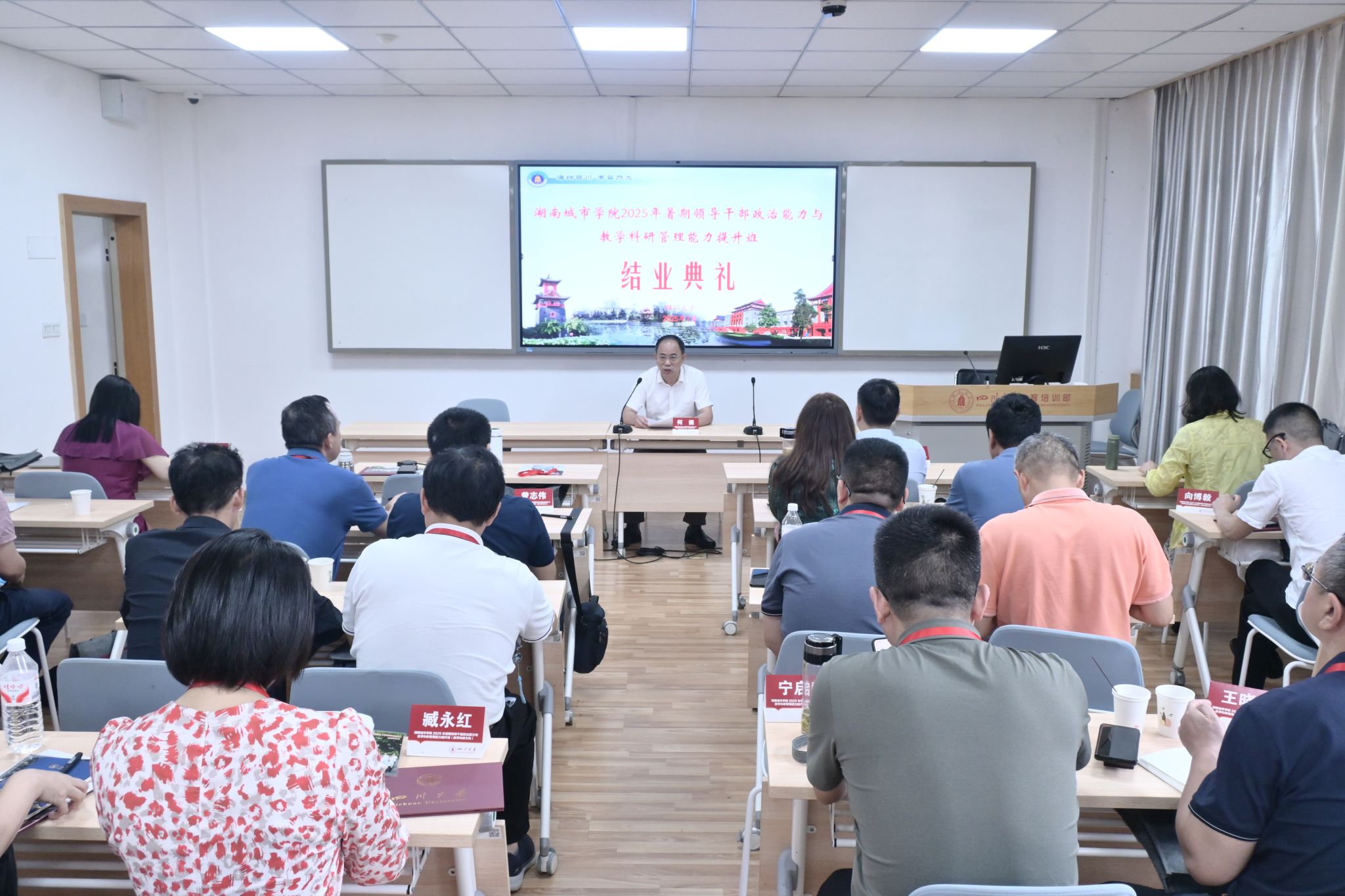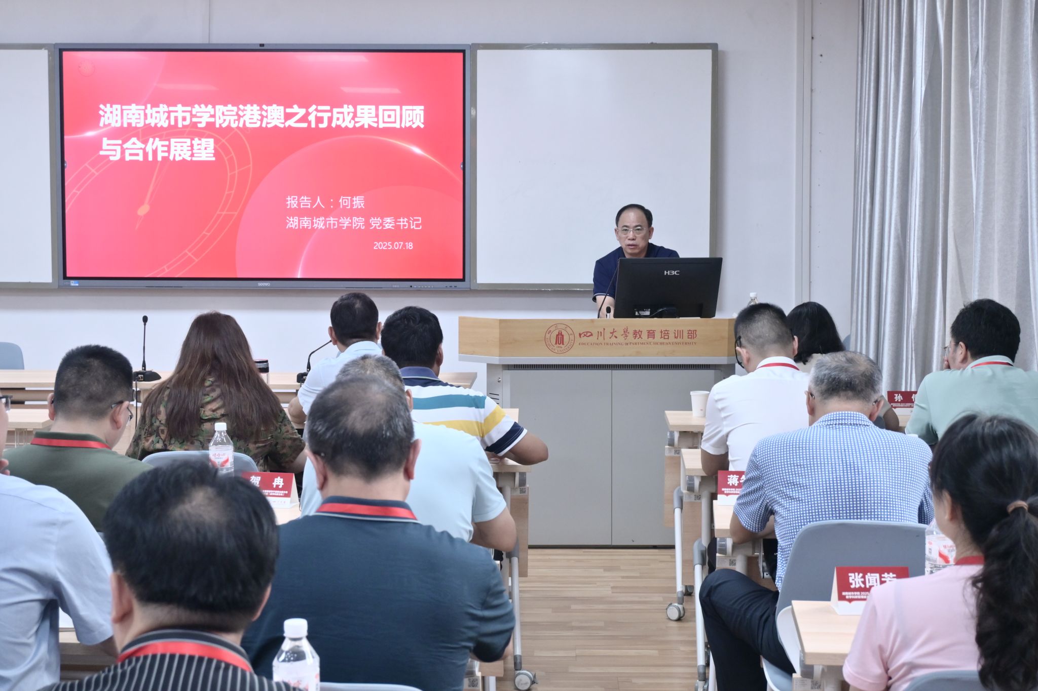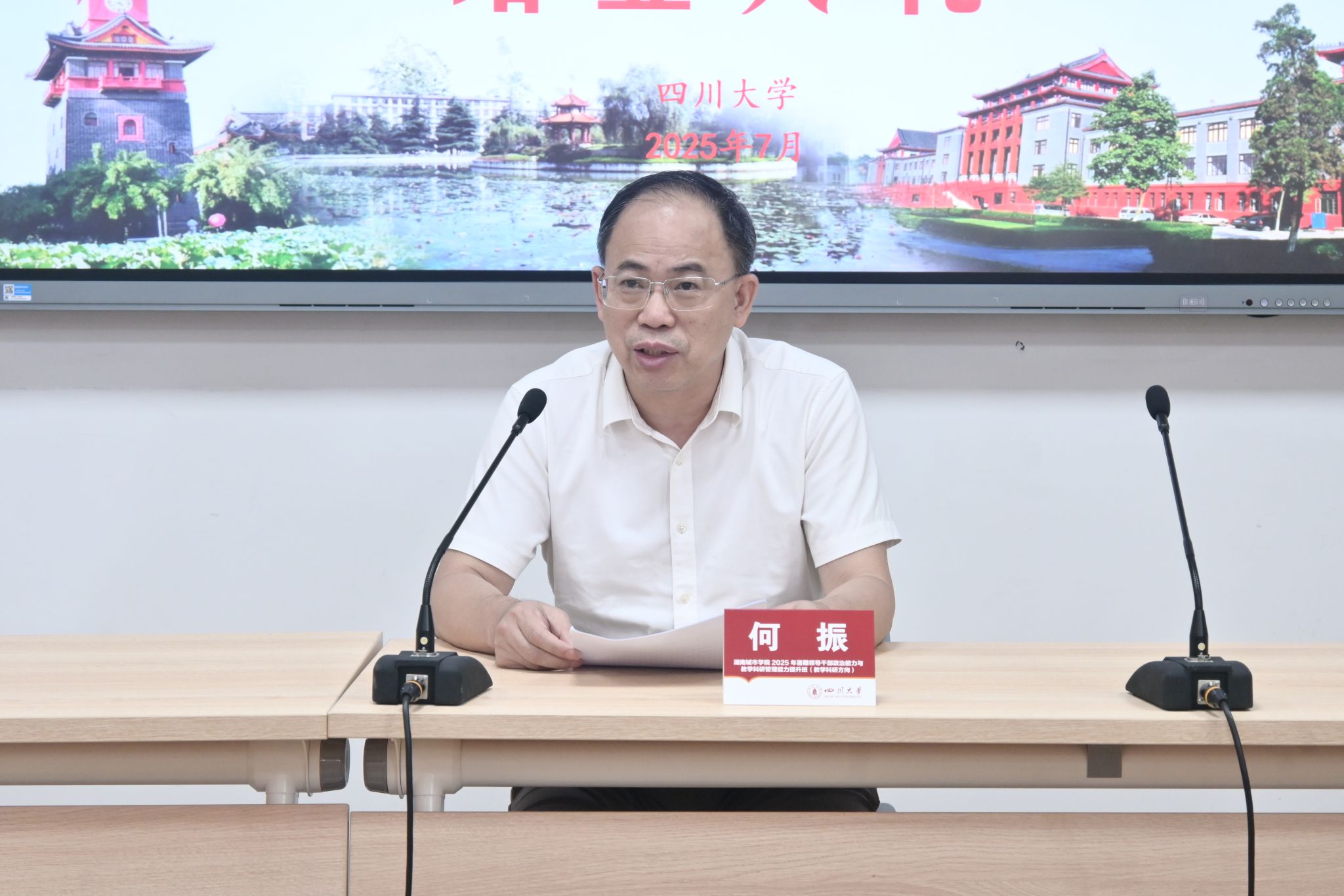 何振对四川大学教育培训部的辛勤付出表示感谢,向顺利完成培训任务的全体学员表示热烈祝贺。他表示,此次培训教学理念够前沿,教学内容够丰富,教学视野够开阔,教学形式够鲜活,思想碰撞够深入,服务保障够暖心,收获非常丰硕。