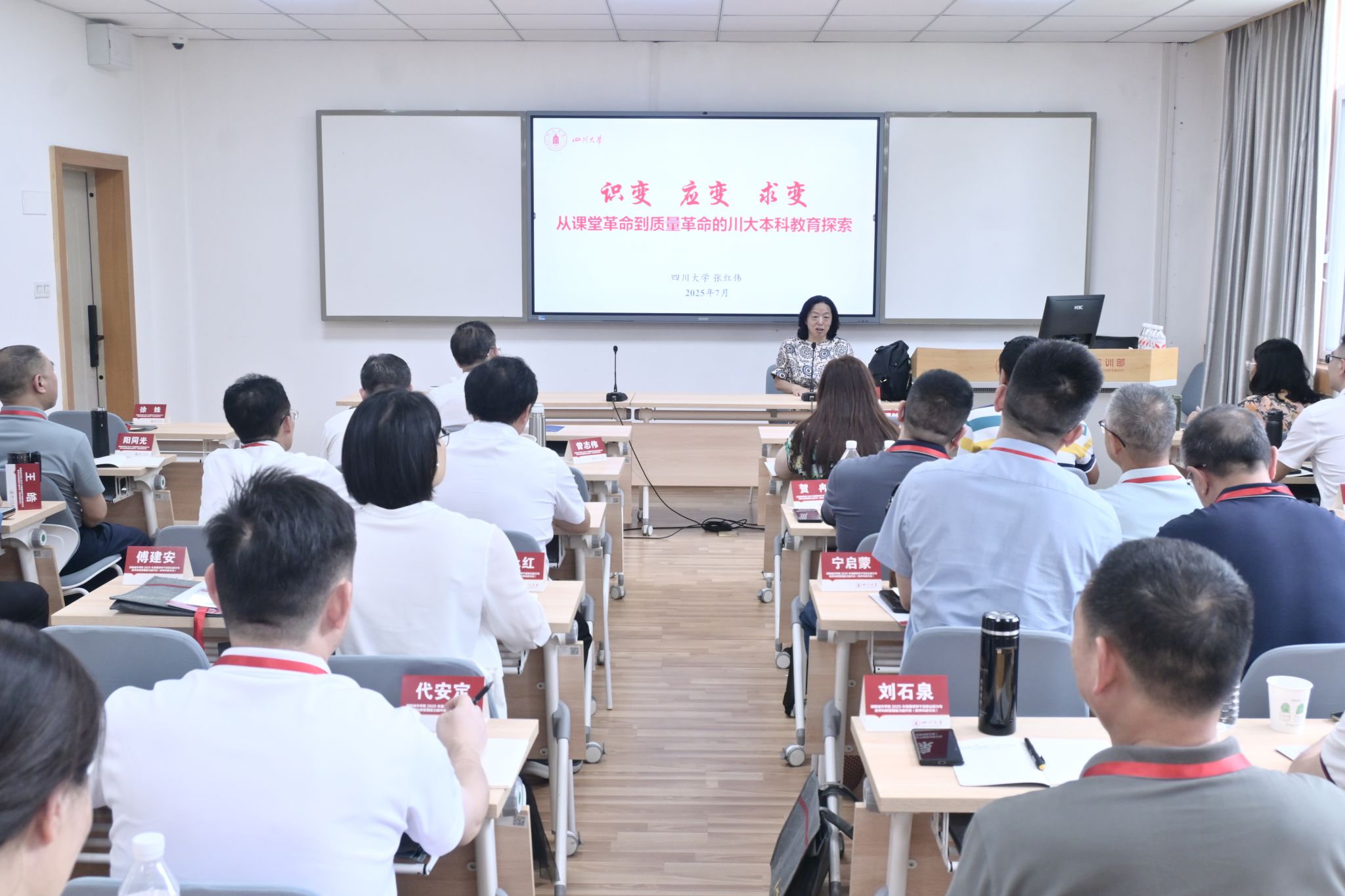 在专题辅导环节,专家们带来了8堂精彩纷呈的专题讲座。四川大学张璐璐副教授分享的《小班化教学改革及学生能力提升途径》,结合她所教授的“学术英语写作”课程,分析了批评性与逻辑思维在学术英语写作中的重要性。张红伟教授围绕“为什么要办一流的本科教育”“如何办一流本科教育”等问题,深入探索了从课堂革命到质量革命的川大本科教育。教师教学发展中心林祎老师分享了基于学生高阶思维培养的教师教学创新改革路径。洪玫教授以四川大学国家级一流专业——软件工程专业为例,阐述了应用型本科高校建设国家级一流专业的创新之路。贺喆南教授围绕“什么是‘双一流’建设”“什么是学科建设”等问题,以四川大学学科建设为例,分享了他对“双一流”背景下的学科建设认识与思考。周加贝副教授的《人工智能大模型赋能教学工作的实践与探索》和崔亚强副研究员的《信息化在教学中的应用》,用生动案例解析AI技术如何重塑教学,打开了教学改革的新窗口。冉桂琼研究员结合四川大学获得的国家教学成果特等奖案例,详细阐述了教改项目的申报、教学成果的内涵和凝练,为高校申报教学成果奖提供了清晰的路径指引。