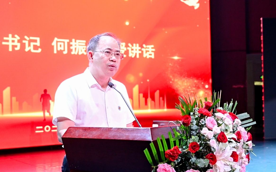 何振代表学校党委行政向为学校事业发展倾注智慧和心血的全体教职员工、离退休老同志致以节日的问候和衷心的感谢,并向受表彰的先进个人表示热烈的祝贺和崇高的敬意。他全面回顾了过去一年学校在教师队伍建设、教学科研、学科专业发展、条件保障等方面的显著成效。他指出,一年来,全校教师以习近平总书记关于中国特有的教育家精神的重要论述为指引,以赤诚之心、奉献之心、仁爱之心投身教育事业,主动服务湖南省“三高四新”美好蓝图,奋力谱写了教育强省、人才兴校的生动实践。