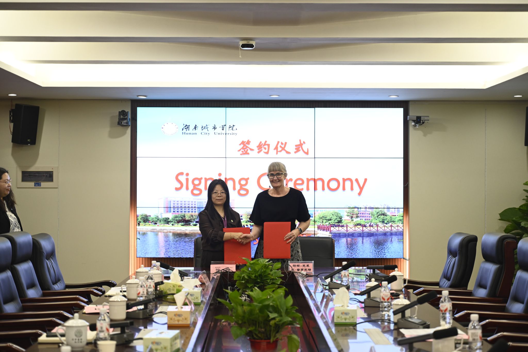 在双方代表共同见证下,徐姝与Mary-Claire Proctor代表两校签署硕士层次中外合作办学项目意向书。两校将进一步拓展视觉传达设计学科硕士层次的国际化发展路径,为学校提升国际化办学水平、培养具有国际视野的高素质人才提供了有力支撑。