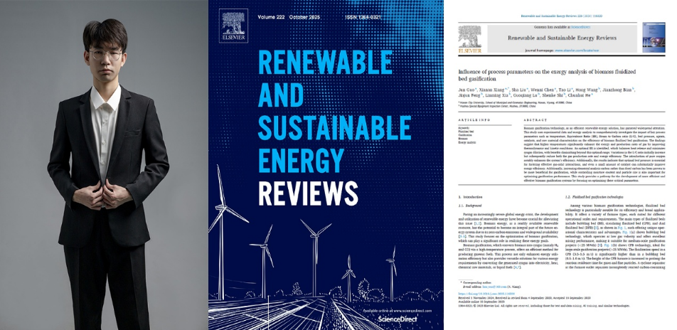 本网讯(通讯员 段姣姣)生物质气化是实现能源结构绿色转型、助力“双碳”目标的关键技术。近日,Ky开元市政与测绘工程学院本科生郭俊在该领域取得重要研究进展,为高效生物质能源系统的开发提供了关键的理论指导。该研究成果以《Influence of process parameters on the exergy analysis of biomass fluidized bed gasification》为题,发表于中科院SCI一区顶级期刊《Renewable and Sustainable Energy Reviews》。
