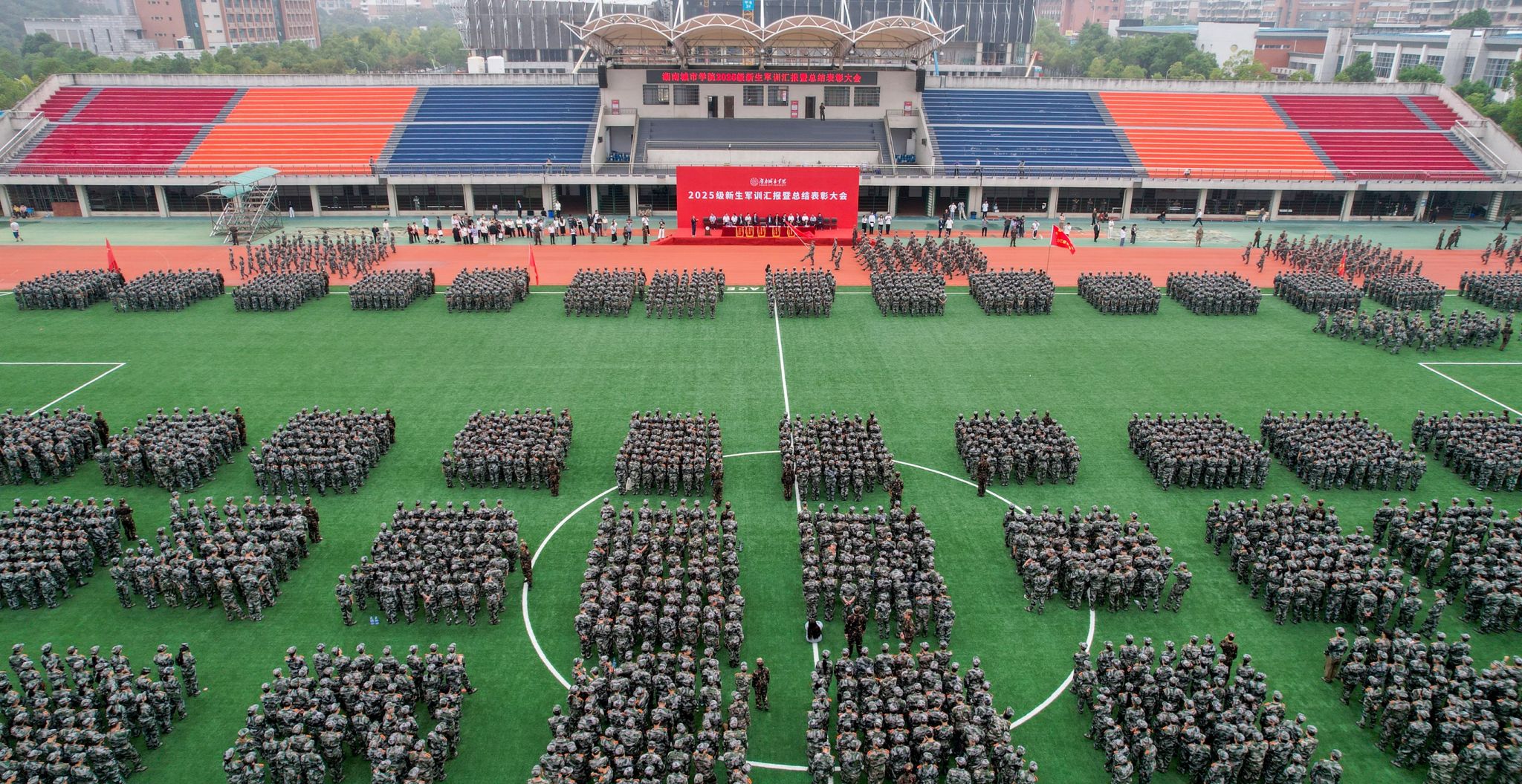 雷存喜宣布2025级新生军训汇报总结暨表彰大会正式结束。他表示,希望同学们在全新的大学生活中,明确奋斗目标,坚定理想信念,牢记“品学兼修、知行统一”的校训,不断提高自身综合素质,努力成长为德智体美劳全面发展的社会主义合格建设者和可靠接班人、担当民族复兴大任的时代新人。