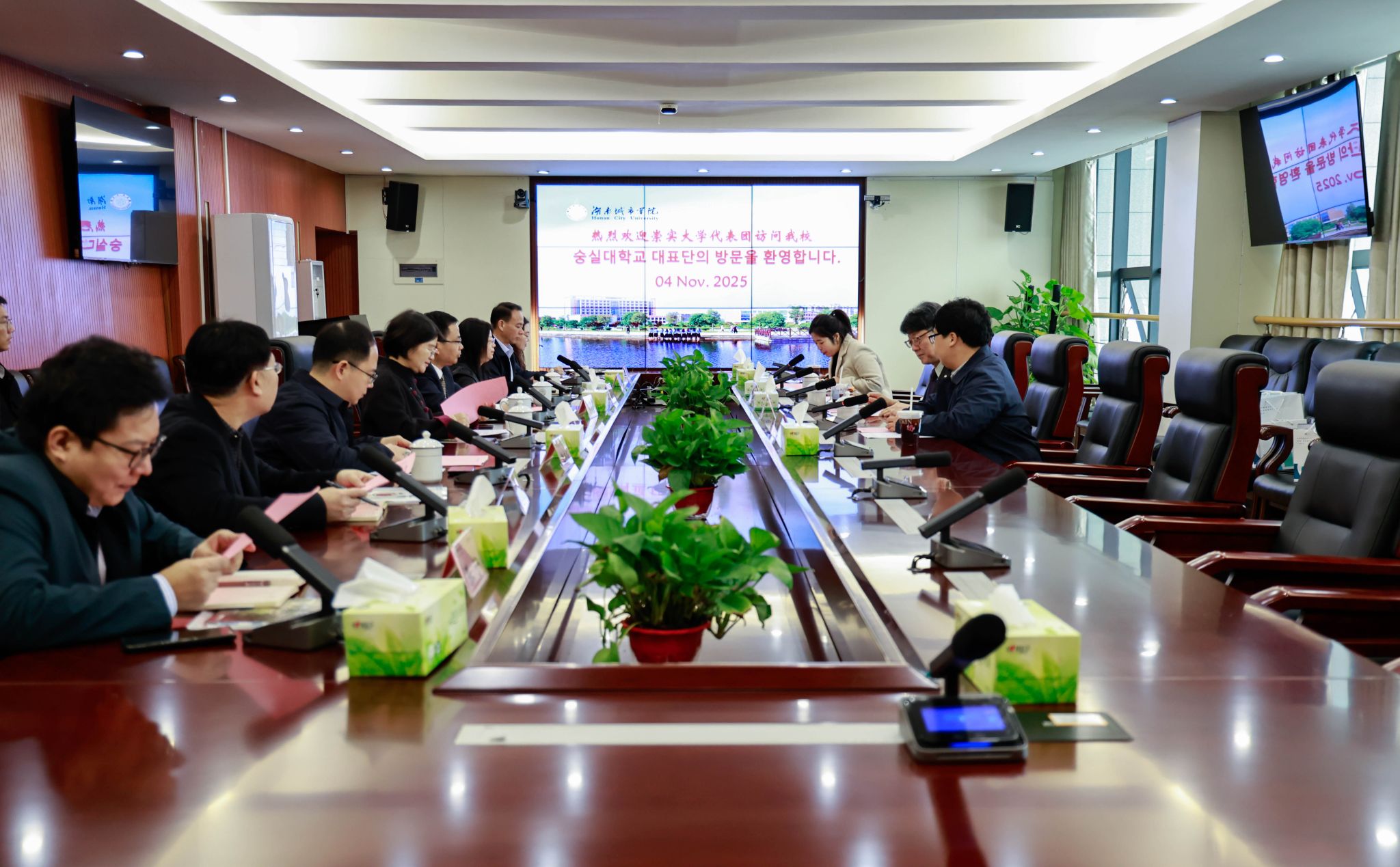 张庚男详细地介绍了崇实大学的办校理念、课程设置以及国际交流的经验。他表示,希望进一步拓展两校合作领域,创新合作方式,实现互利共赢。期待通过师生互访、举办文化活动、共建特色课程等形式,让两校师生增进了解,感受不同课程的魅力,通过加强教育合作,实现资源共享、优势互补。