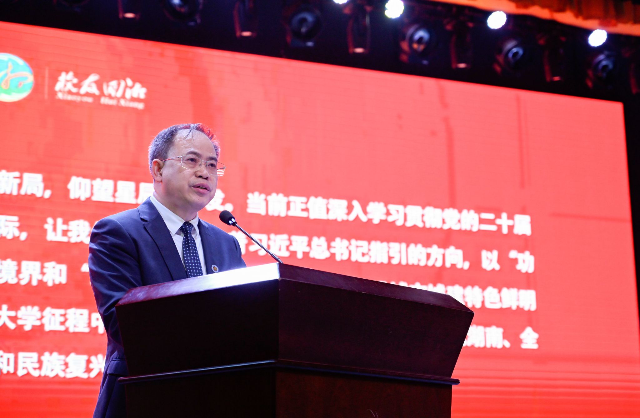“站在建校55周年的历史时点,我们无比感激这个伟大的时代!”何振作了题为“同忆峥嵘岁月 共筑美好城院 奋进城市城建特色鲜明的高水平应用型大学新征程”的致辞。他从六个方面介绍了学校办学五十五周年以来的事业发展情况:一是自力更生、迎难而上,书写了舍身创业、勠力兴业的感人诗篇。白手起家,引领益阳高等教育先河。强强合并,完成专科向本科升级转型。稳中快进,实现本科向研究生教育跨越发展。二是勇开先河、执着坚守,擦亮了特色立校、城建报国的鲜明底色。聚焦城市主题,做强城建类特色学科。心怀“国之大者”,坚守城市城建主战场。深耕中小城镇,助力乡村全面振兴。三是扎根湖湘、走向世界,践行了为党育人、为国育才的初心使命。培根铸魂,造就城市精英。厚植沃土,培育创新栋梁。坚定自信,培养国际人才。四是应势而动、顺势而为,扬起了紧跟时代、勇立潮头的改革风帆。激励担当作为,深化干部体制改革。激发内生动力,深化人事综合改革。激活管理效能,深化精细化改革。五是瞄准前沿、精准服务,诠释了科技兴邦、服务建功的铁肩担当。争做尖兵,紧盯战略需求。协同攻关,筑牢科研平台。抢占高地,加速成果转化。六是矢志一流、趁势而上,吹响了升格大学、申报博士点的进军号角。坚定不移培养现代城市建设拔尖创新人才,坚定不移服务国家重大需求和经济主战场,坚定不移锚定“升大申博”主任务。