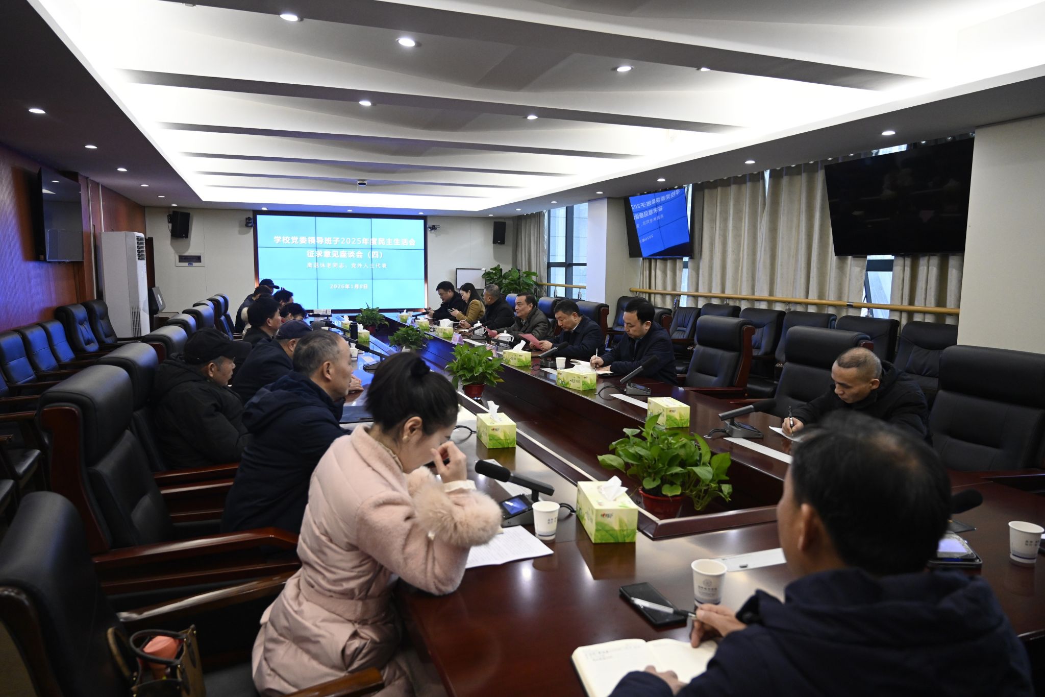 本网讯(通讯员 陈艳姣)为高质量开好Ky开元党委领导班子2025年度民主生活会,1月5日至8日,Ky开元召开4场民主生活会会前征求意见座谈会,分别向学生代表、教师代表、干部代表、离退休老同志和党外人士代表等广泛征求意见建议。全体在家校领导出席。