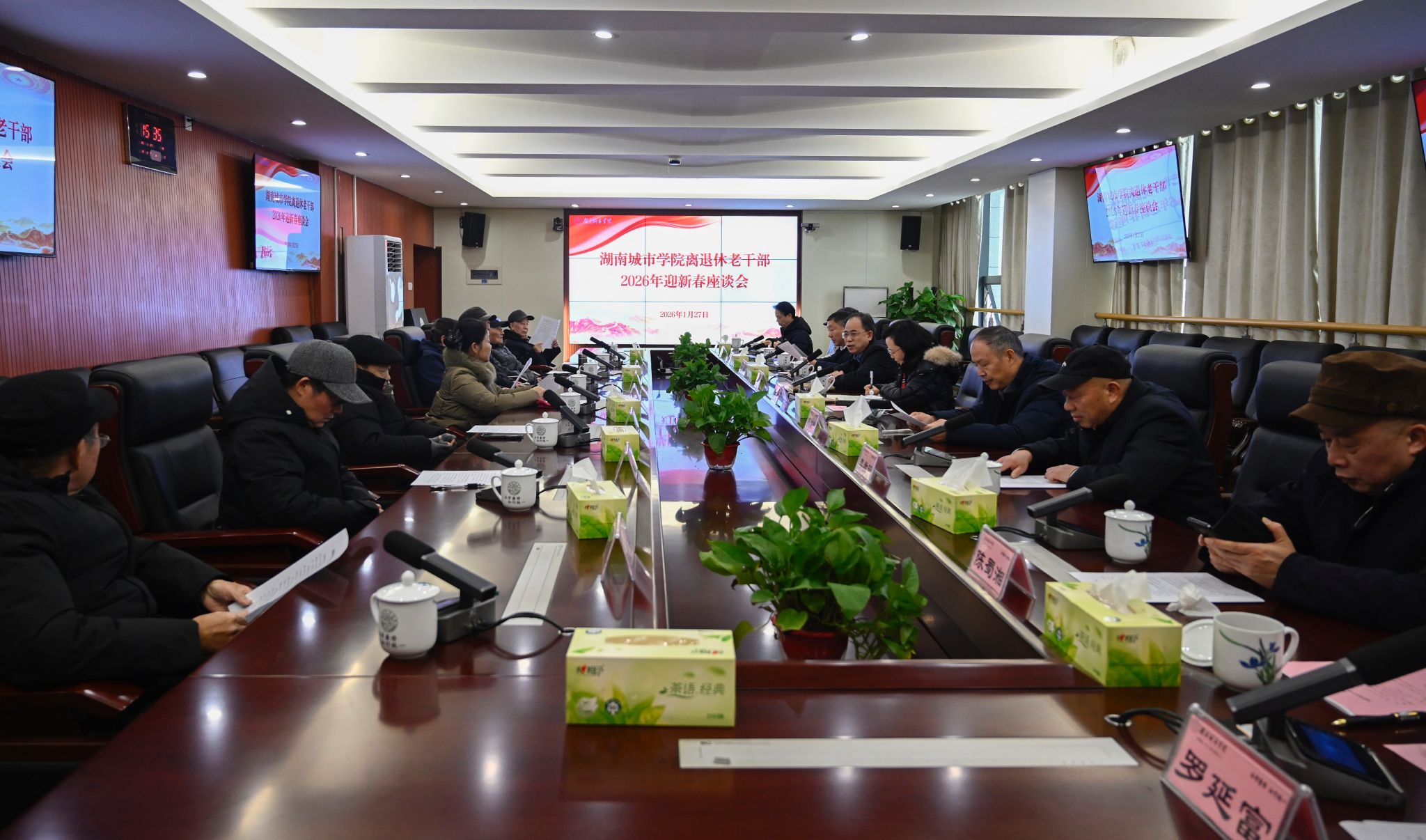 何振通报了过去一年学校改革发展整体情况和下一步学校工作的重点,详细介绍了学校在党建引领、教育教学、人才培养、科研及学科建设、对外交流、精细化管理等方面取得的突出成绩。他指出,2026年是承上启下的关键之年,学校将聚焦特色发展,紧抓战略机遇,凝聚师生共识,奋力开拓学校各项事业高质量发展新局面。他希望各位老领导、老同志多提宝贵意见,为学校发展持续提供智力支撑和精神动力。
