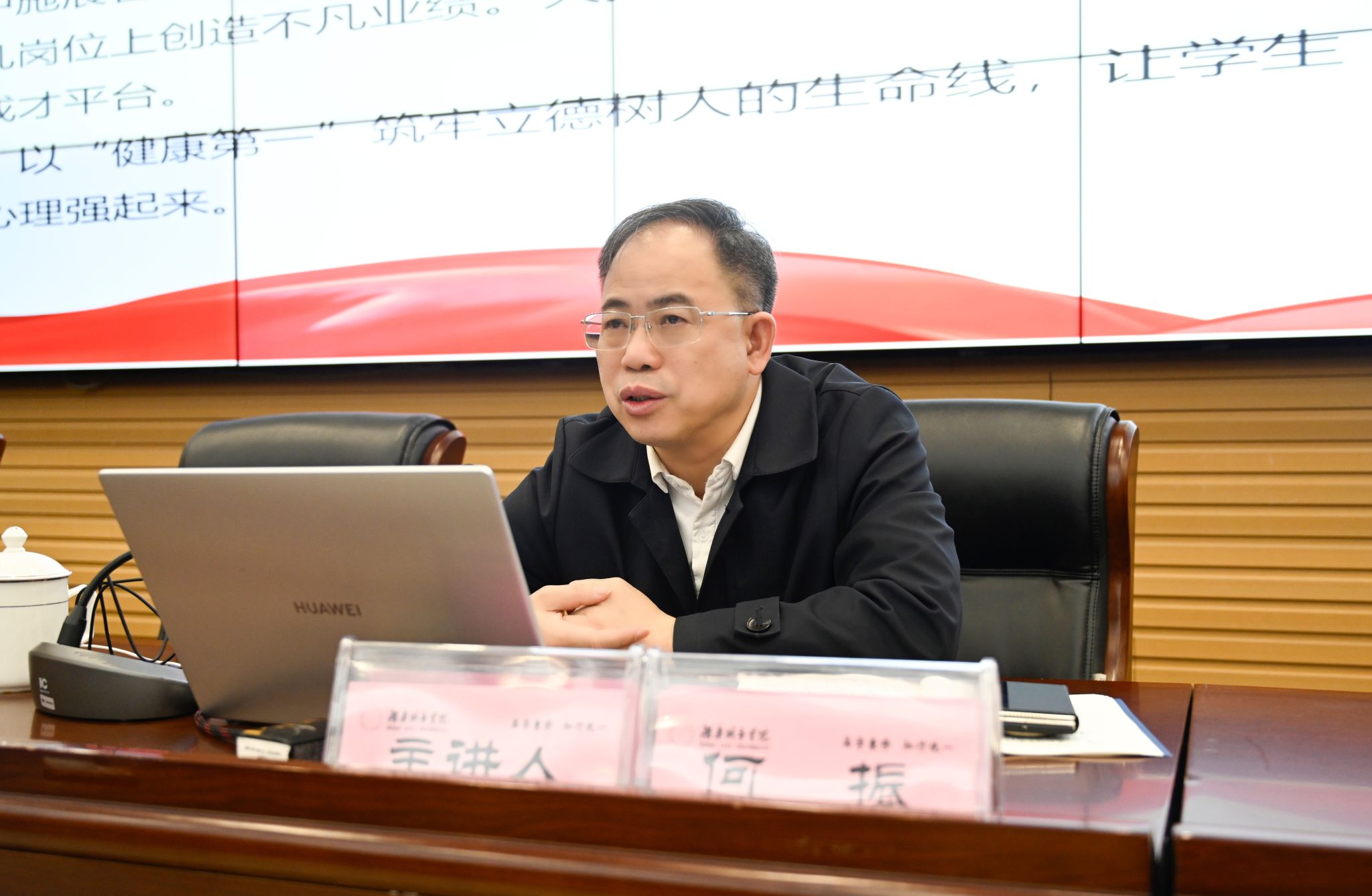 本网讯(通讯员 谢文静)为深入学习贯彻习近平总书记关于树立和践行正确政绩观的重要论述,3月28日,学校在图书馆报告厅举办学习贯彻党的二十届四中全会精神研讨班暨树立和践行正确政绩观学习教育读书班。校党委书记何振强调,全体领导干部要进一步提高政治站位,把树立和践行正确政绩观与推动学校高质量发展紧密结合,聚焦“十五五”发展目标,以“功成不必在我”的精神境界和“功成必定有我”的历史担当,奋力书写学校事业发展新篇章。