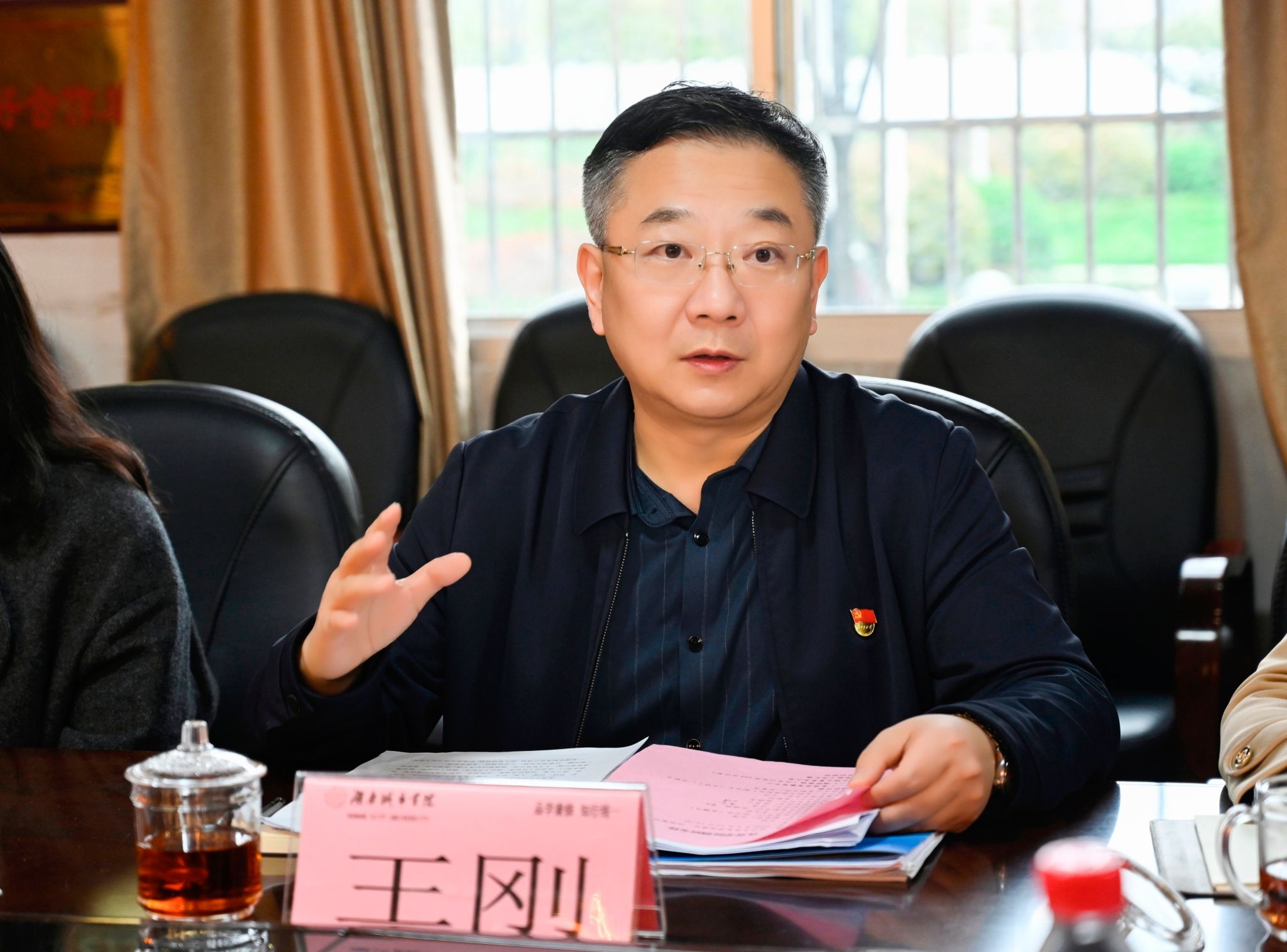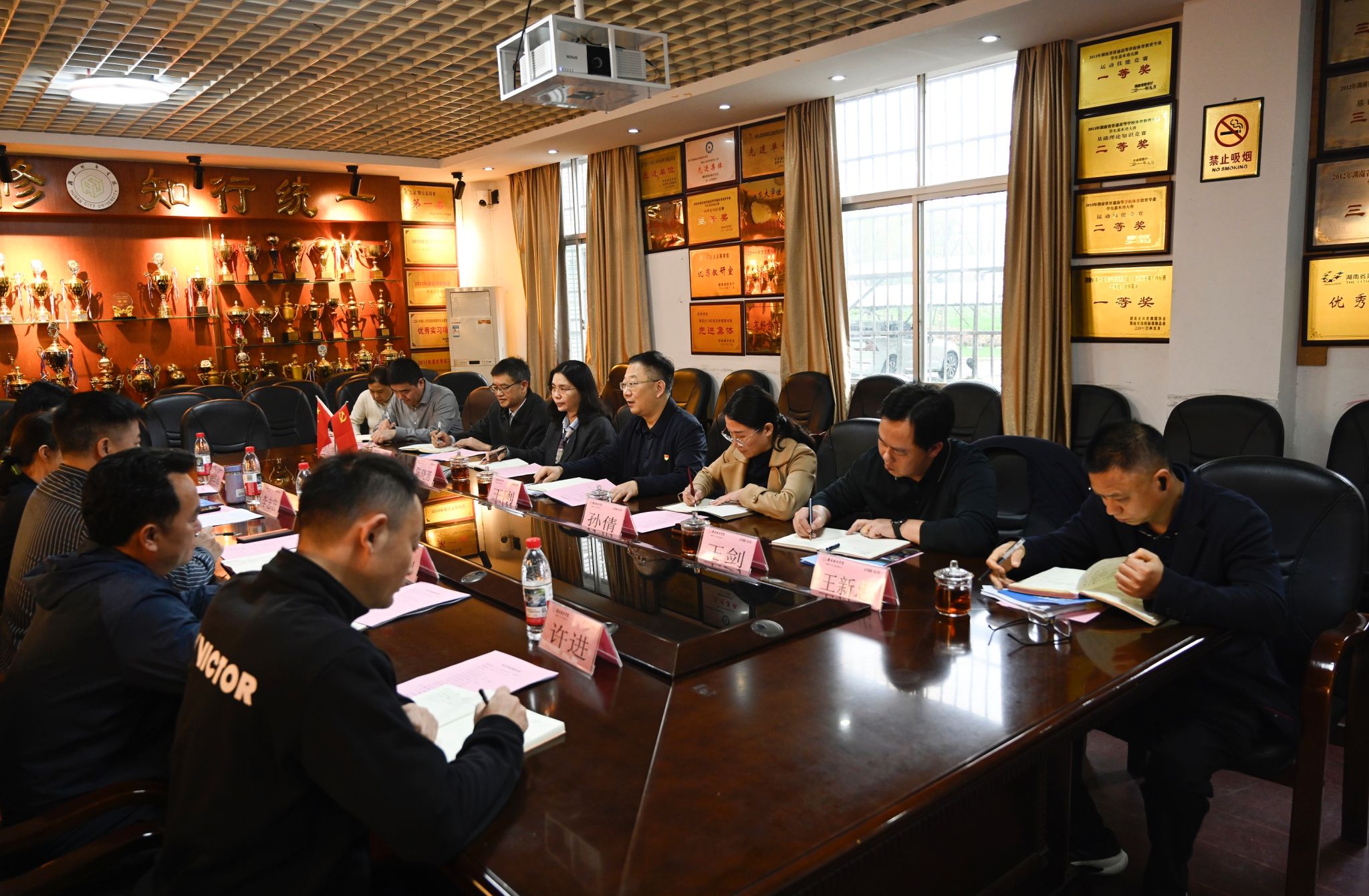 在随后召开的调研座谈会上,王刚围绕体育教学中心各项工作提质增效发表讲话并作出部署:一要聚焦规范高效,加强精细管理,以精细化管理促进高质量发展。要坚持高标准、严要求,健全制度体系,明确各部门岗位职责,规范工作流程,做到管理有依据、落实有制度,优化内部协同机制,打破部门壁垒、加强统筹,在项目建设、采购等重点工作上锚定全省排名前列、质量冲上一流水准的目标,推动工作提质进位;二要紧扣育人核心,提升工作质效,锚定立德树人根本任务。要始终把立德树人放在首位,狠抓教育教学质量,深化教育教学改革。要强化竞赛引领,彰显体育特色,以赛促学、以赛促练,打造学校体育工作亮眼名片,全面提升科研与社会服务水平,主动对接“湘超”“湘BA”等区域发展机遇,以省运会为纽带拓展服务领域、提升服务能级,在服务全省体育事业发展中彰显学校价值;三要立足保障支持,加快建设管理,夯实学校发展硬件基础。要坚持高规格、高水平谋划推进场馆建设,做好场馆运营,选好配套业态,加强沟通衔接、健全管理制度。合理使用场馆资源,优先保障体育教学、训练需求,让场馆真正服务于人才培养、服务于师生发展,以高度的责任感抓实抓细各项保障工作,为学校高质量发展提供坚实支撑。