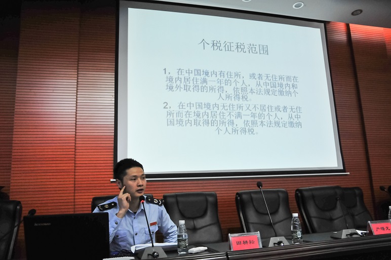 夏奔为与会人员讲解了个人所得税征收范围涵盖的11种情况以及个人所得税代扣代缴暂行管理办法,针对高校的实际情况,重点对个人工资薪金所得、劳务报酬所得、稿酬所得、人才引进安家费等的具体征收办法做了解释。