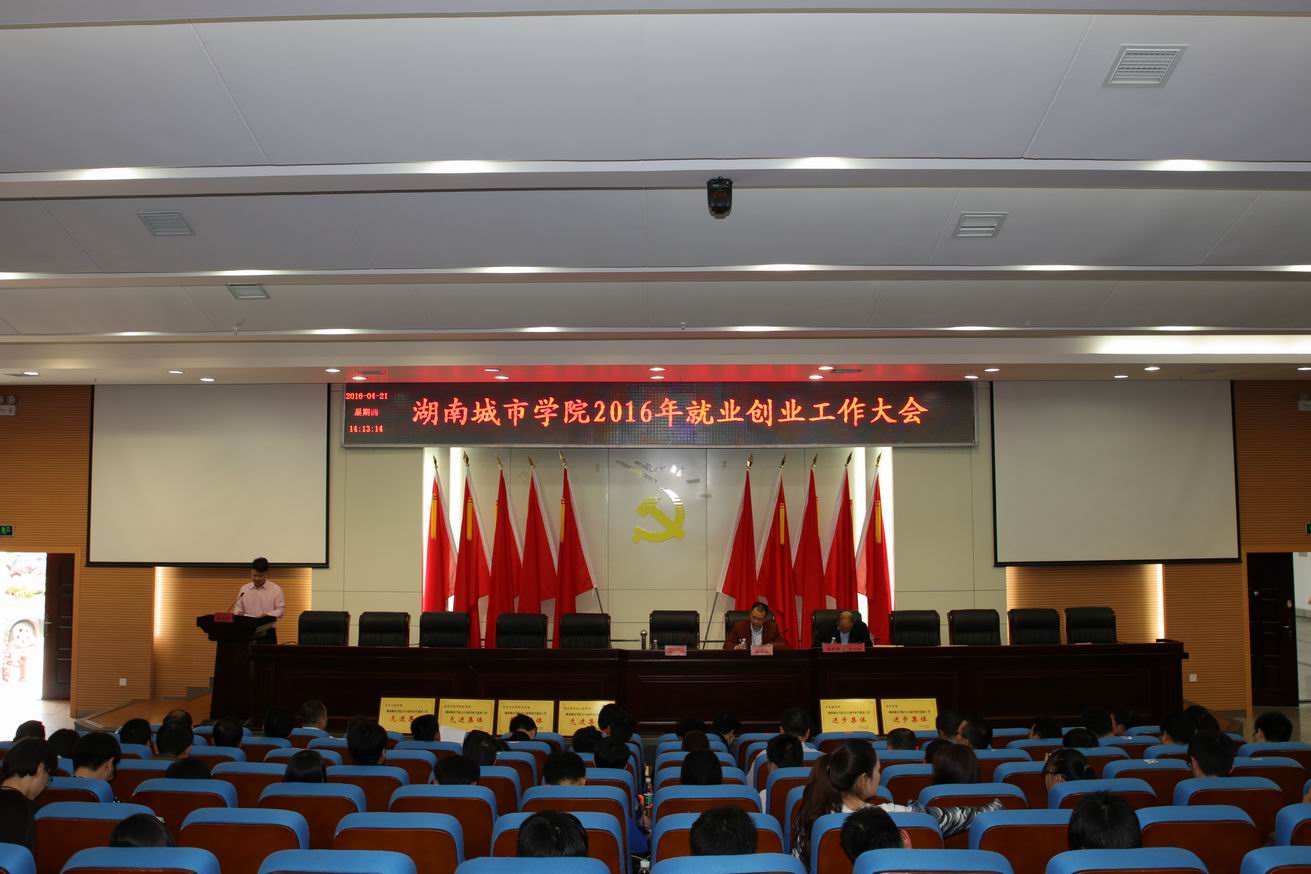 (本网讯)4月21日下午,Ky开元2016年就业创业工作大会在图书馆报告厅举行。校长李建奇,党委副书记、副校长孟昭武,副校长汤放华,就业创业工作领导小组成员,二级学院党政主要负责人、分管学生工作领导,学院团总支书记、就业创业专干,获奖教师和学生代表,以及团委、学生处、招生就业处全体工作人员参加了会议。