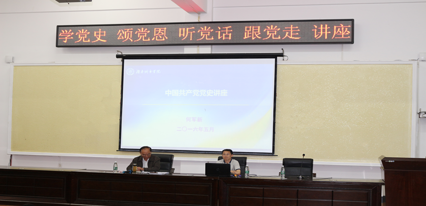 讲座中,何军新回顾了中国共产党的光辉历史和取得的辉煌成就,阐明了没有共产党就没有新中国,没有共产党就没有改革开放的伟大成就,没有共产党就没有今天的幸福生活,进一步激发大学生爱党爱国的热情,坚定“听党话、跟党走”的信念。