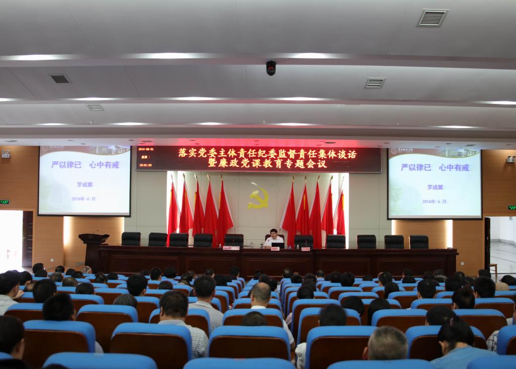 (本网讯)6月21日下午,Ky开元落实党委主体责任纪委监督责任集体谈话暨廉政党课教育专题会议在图书馆报告厅举行。全体校领导,党代会代表,学校副处级以上干部,机关党总支全体党员、马克思学院、城市管理学院党员代表参加了会议。会议由纪委书记姚春梅主持。