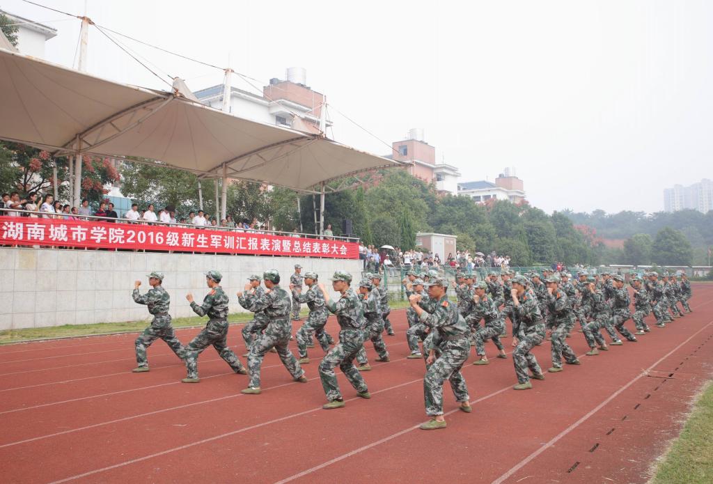 汇报表演结束后,副校长谭献良代表学校作军训总结讲话。他指出,今年学校军训工作有四大特点:一是各级领导高度重视和悉心指导;二是机关处室、二级学院与教官工作积极主动,高度负责;三是全体参训同学,文明上进,不怕苦、不怕累;四是国防教育和入学教育完美结合。