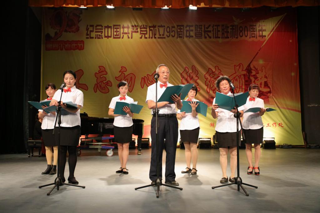 在隆重的表彰庆祝大会后,由老同志们自导自演的“不忘初心,继续前进”文艺演出拉开帷幕。嘹亮、雄状的歌声,才华横溢的作品,满怀深情的诗朗诵,独具特色的京剧彩唱,将文艺演出活动推向高潮。老同志们的才艺表演透着满满的幸福感,充满着健康向上的正能量。(文/熊文高 图/文彦波)