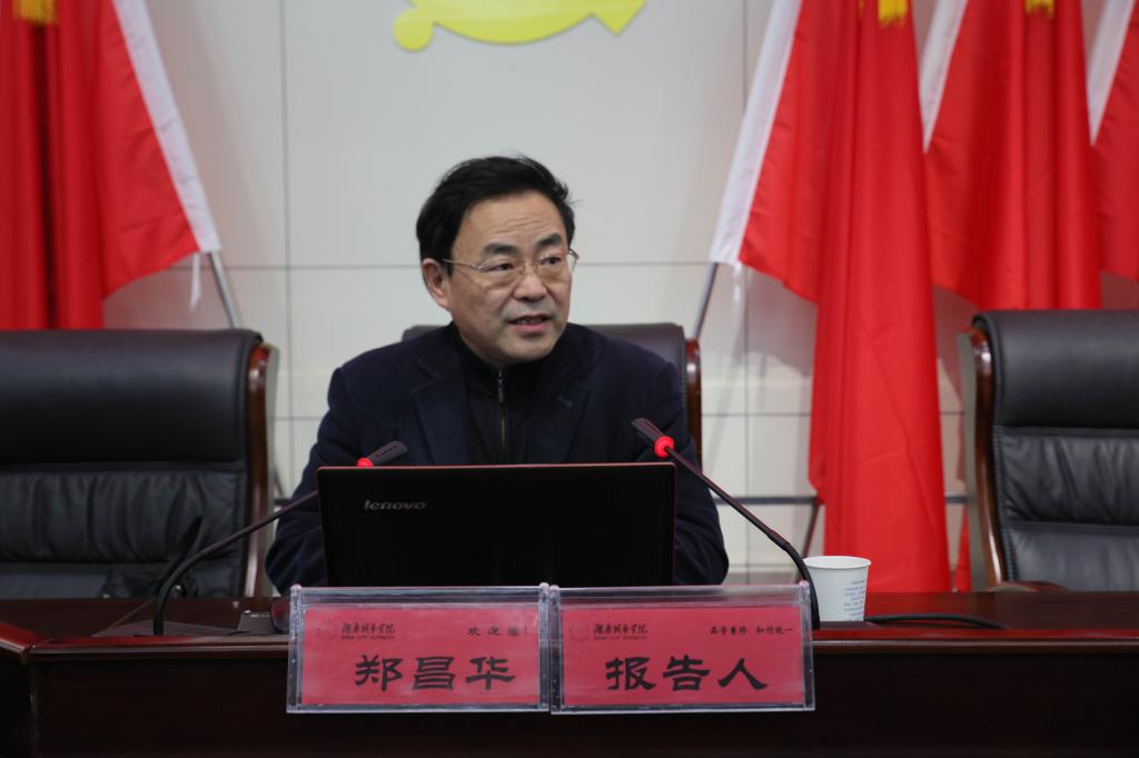 (本网讯)12月13日下午,省委讲师团主任郑昌华教授应邀在Ky开元图书馆报告厅举行党的十八届六中全会精神宣讲报告会。校领导汤放华、姚春梅、何振、罗新湘、范志超,副科级以上干部、教工党支部书记、学生党支部书记、全体辅导员参加了报告会。会议由党委副书记汤放华主持。