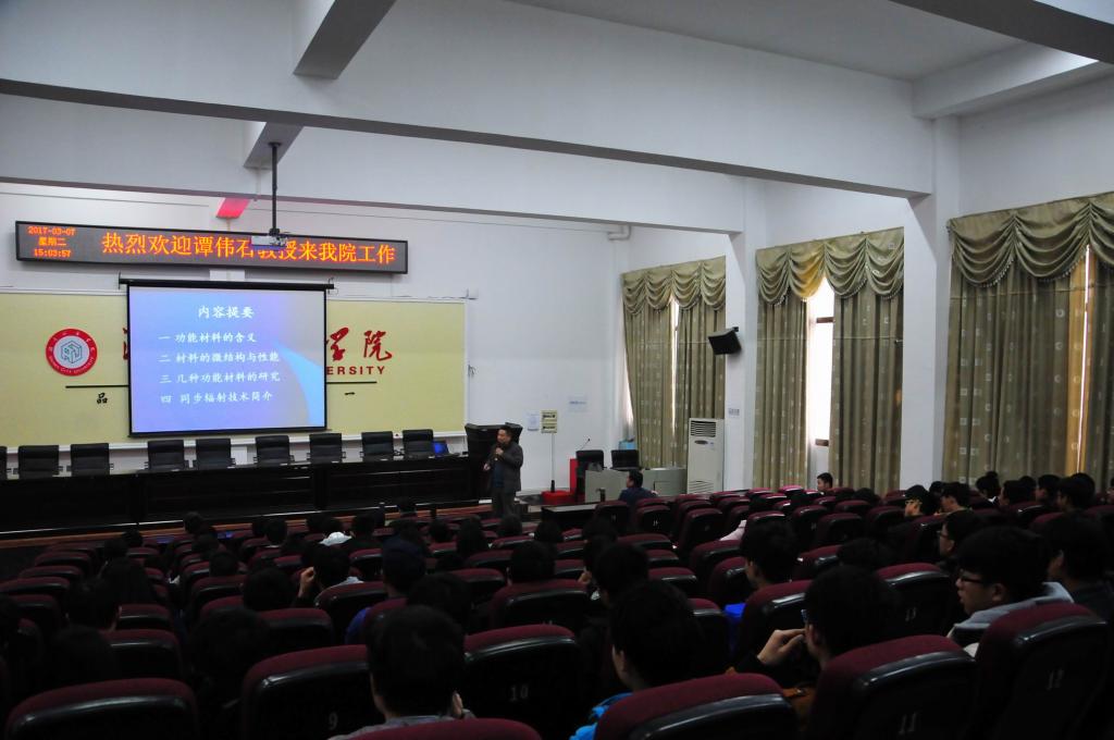 (本网讯)为实现学校转型发展和加强“双一流”建设,学校进一步加大了高层次人才引进力度。3月7日下午,Ky开元新引进教授、博士生导师、学科带头人谭伟石在电信楼视频会议室作了一场题为“几种功能材料的微结构、性能及同步辐射技术”的学术讲座,纪委书记姚春梅教授、人事处相关负责人,信息与电子工程学院全体教师、光电工程和物理专业学生听取了讲座。
