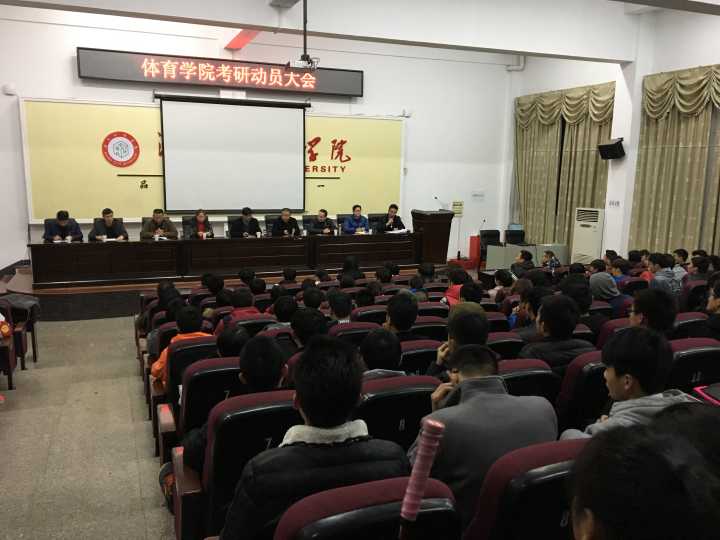 (本网讯)学生“考研”工作是衡量本科教学工作和人才培养质量的核心指标之一。为了让学生进一步了解考研、认识考研,激发学生考研的内在动力,充分调动学生考研的积极性和创造性学习的热情,3月15日晚,体育学院2018届毕业生考研动员会在学校视频会议室召开。教务处相关负责人,体育学院党政班子成员、考研导师代表、2018届毕业班全体班主任和辅导员以及该院2018届考研学生、2015和2016级意向考研学生参加会议。