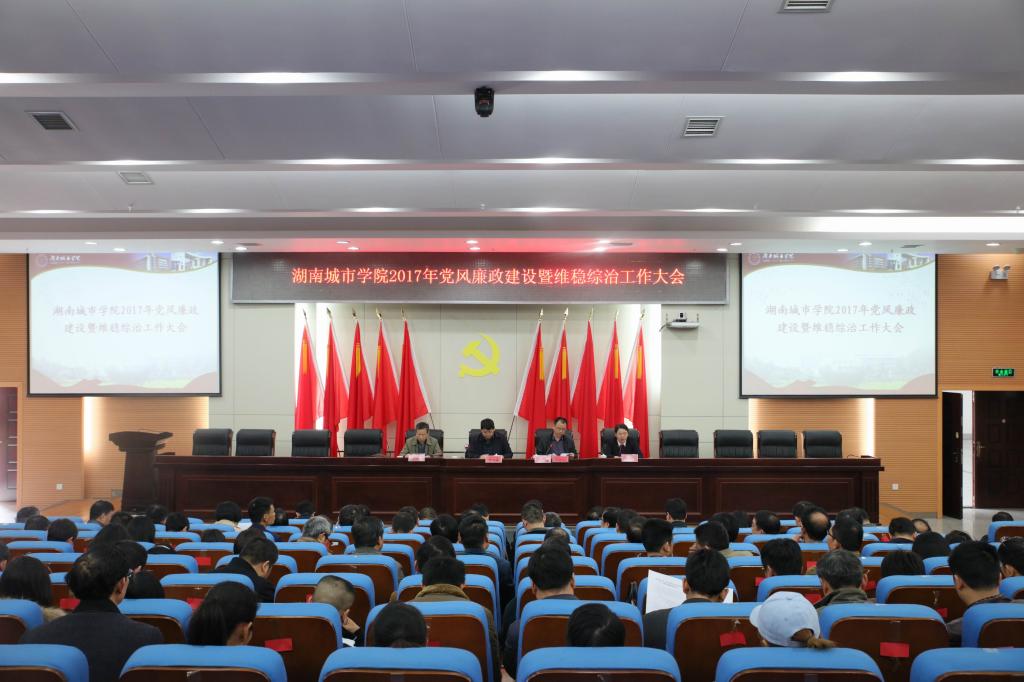 (本网讯)4月11日下午,Ky开元2017年党风廉政建设暨综治维稳工作会议在图书馆报告厅召开。全体校领导、副处以上干部、党风廉洁建设观察站成员、部分单位科级干部参加会议。会议由校长李建奇主持。