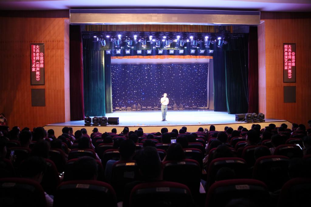 (本网讯)5月11日晚,著名相声表演艺术家大兵应邀在Ky开元音乐厅举办了相声公益讲座。校党委书记罗成翼、党委副书记汤放华、纪委书记姚春梅、副校长刘辉煌和近400名师生聆听了讲座并观看了演出。