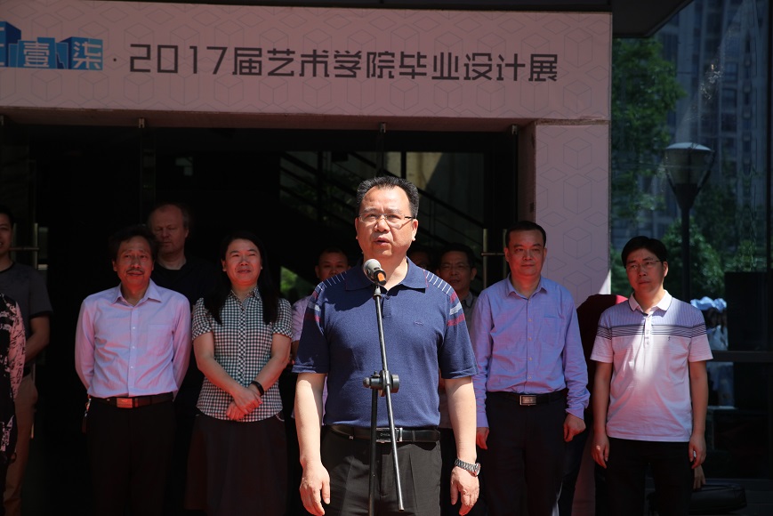 李建奇宣布艺术学院2017届毕业设计展正式开幕。此次展览为期6天,从5月17日开始至22日结束。(胡庆伦)