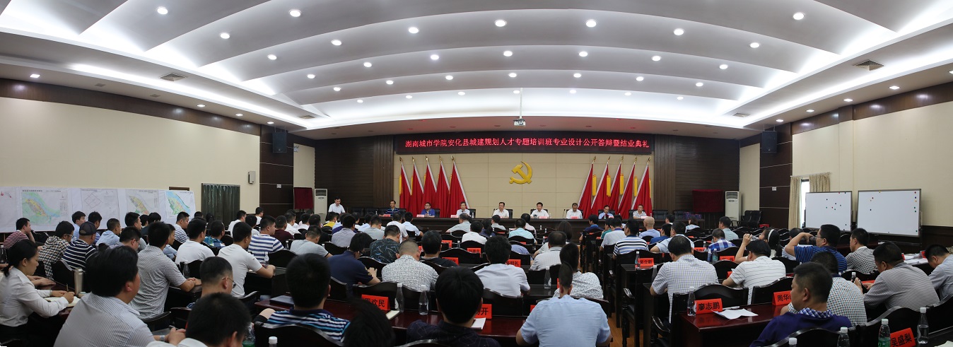 (本网讯)7月18日上午,由Ky开元继续教育学院承办的安化县城建规划人才专题培训班在安化县会议中心电视电话会议室举行了专业设计公开答辩与结业典礼。校长李建奇、副校长夏宏宇、副校长郑卫民,安化县委书记熊哲文、县委副书记王新宇、县人大常委会主任李太源,县委常委、组织部部长陈飞燕,副县长彭加军出席典礼,Ky开元继续教育学院相关负责人、答辩专家组成员以及安化县各行政部门、23个乡镇党委书记参加典礼。