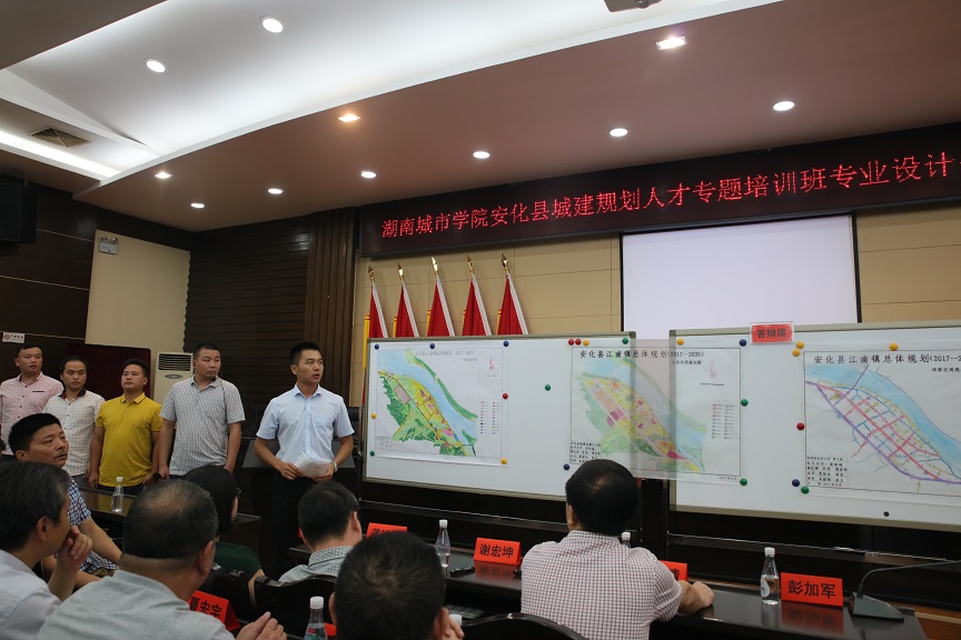在率先进行的公开答辩上,学员们分三组围绕安化县江南镇的总体规划、控制性规划进行答辩,各小组代表分别介绍了本组的设计背景、设计理念、设计策略等情况。答辩专家针对学员们答辩情况进行针对性提问和指导,以进一步帮助学员们解决设计过程中的问题。