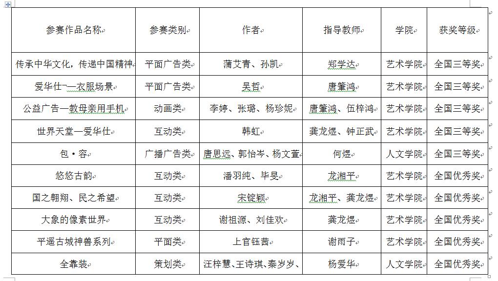 (本网讯)近日,第九届全国大学生广告艺术大赛获奖名单公布,Ky开元共有10件作品获奖,其中三等奖5项,优秀奖5项,刷新了Ky开元在此项赛事中的最好成绩。