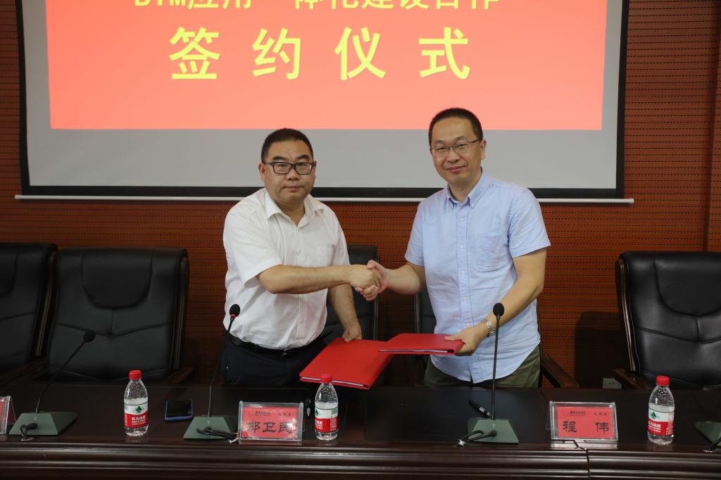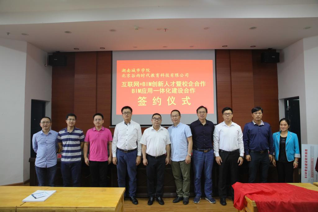 副校长郑卫民、湖南省住房和城建建设厅勘察设计处、湖南省BIM技术应用创新战略联盟秘书长吴庆凯、中国建筑第五工程局有限公司科技部副经理兼BIM中心主任田华、中机国际工程设计研究院有限公司BIM所长助理廖昊、湖南交通职业技术学院建筑工程学院院长刘孟良、北京谷雨时代教育科技有限公司总经理程伟先生、北京谷雨时代教育科技有限公司华中大区经理成超出席了签约仪式。