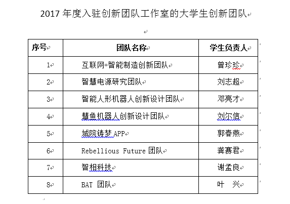 自9月下旬,应创学院下发大学生创新团队入驻申请通知后,各学院大学生创新团队踊跃申请入驻,共有26个创新团队申请入驻并递交了申报材料。